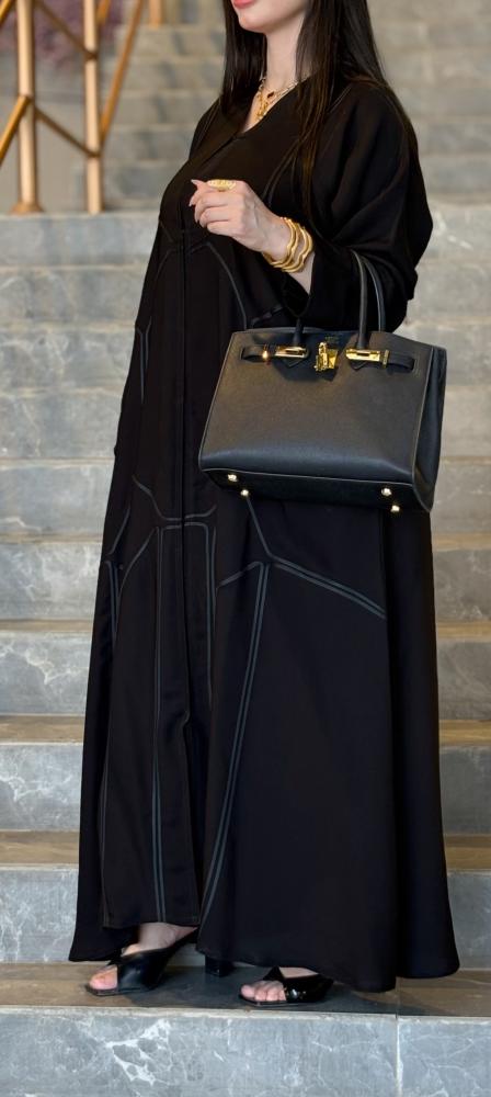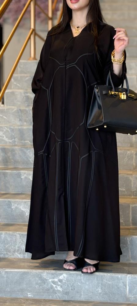 تصميم أسود أنيق يجمع بين البساطة والرقي، مزين بخطوط قيطان على الأمام تضفي لمسة عصرية مميزة.