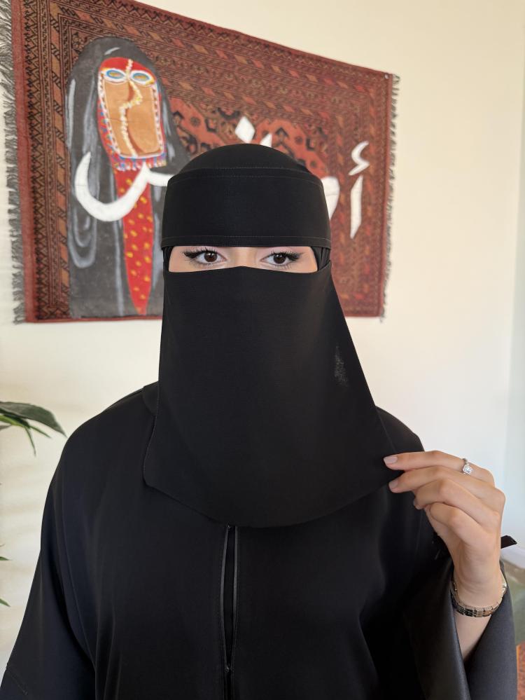 - اللون الأسود للنقاب ثابت لا يبهت بسرعة مع الاستعمال كما أنه يتماشى مع جميع اشكال العبايات والوانها.